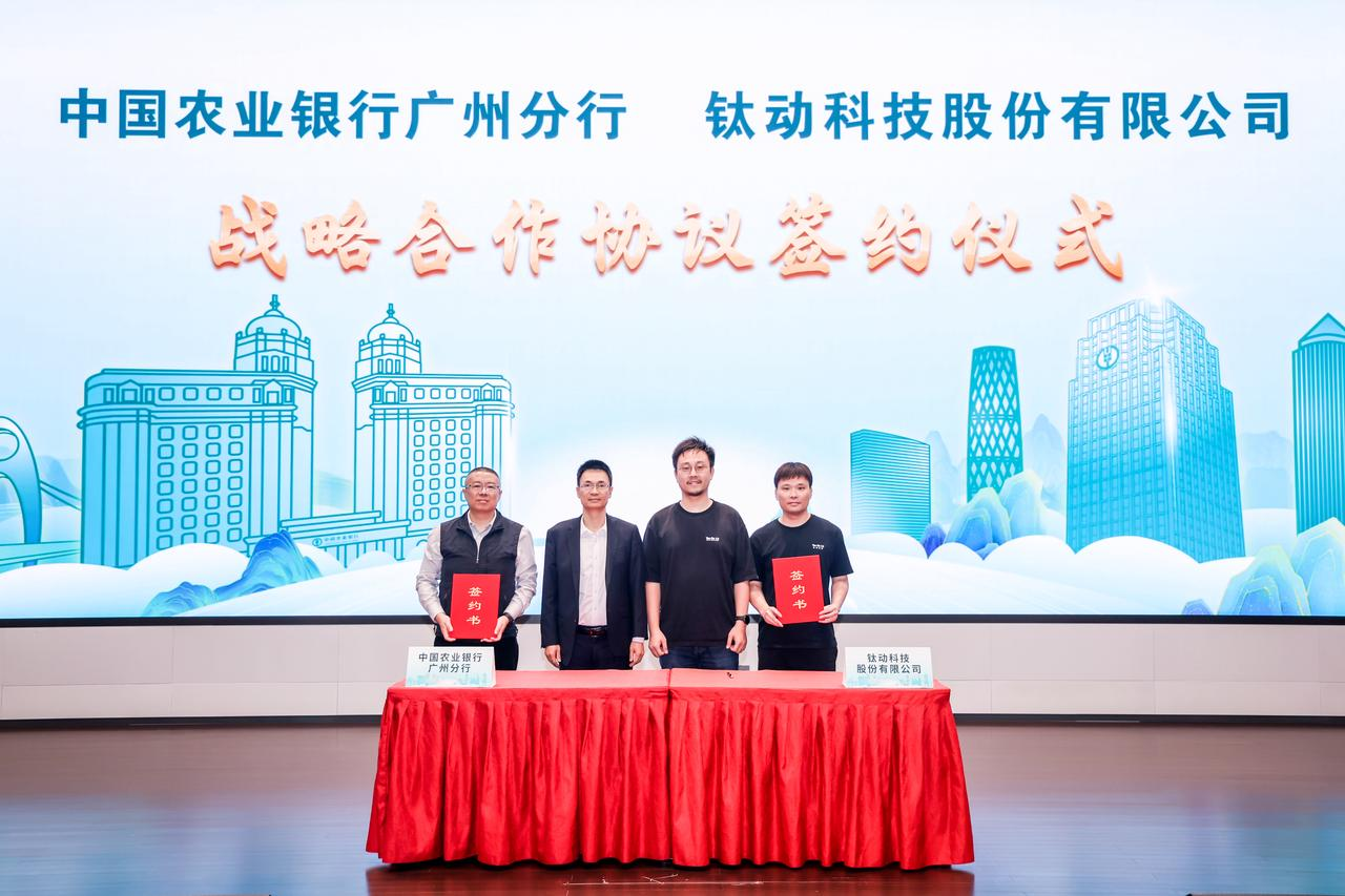 4月21日,钛动科技与中国农业银行广州分行(以下简称“农行广州分行”)签署战略合作协议,获得100亿元综合授信额度。这是农行广州分行迄今给予广东民营科技企业的最大规模授信,钛动科技也成为该行百亿授信额度中唯一的民营科技企业。