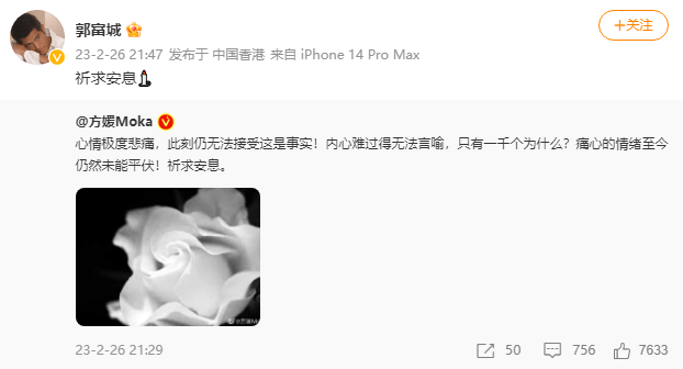 原标题:郭富城方媛发文悼念蔡天凤:内心难过得无法言喻